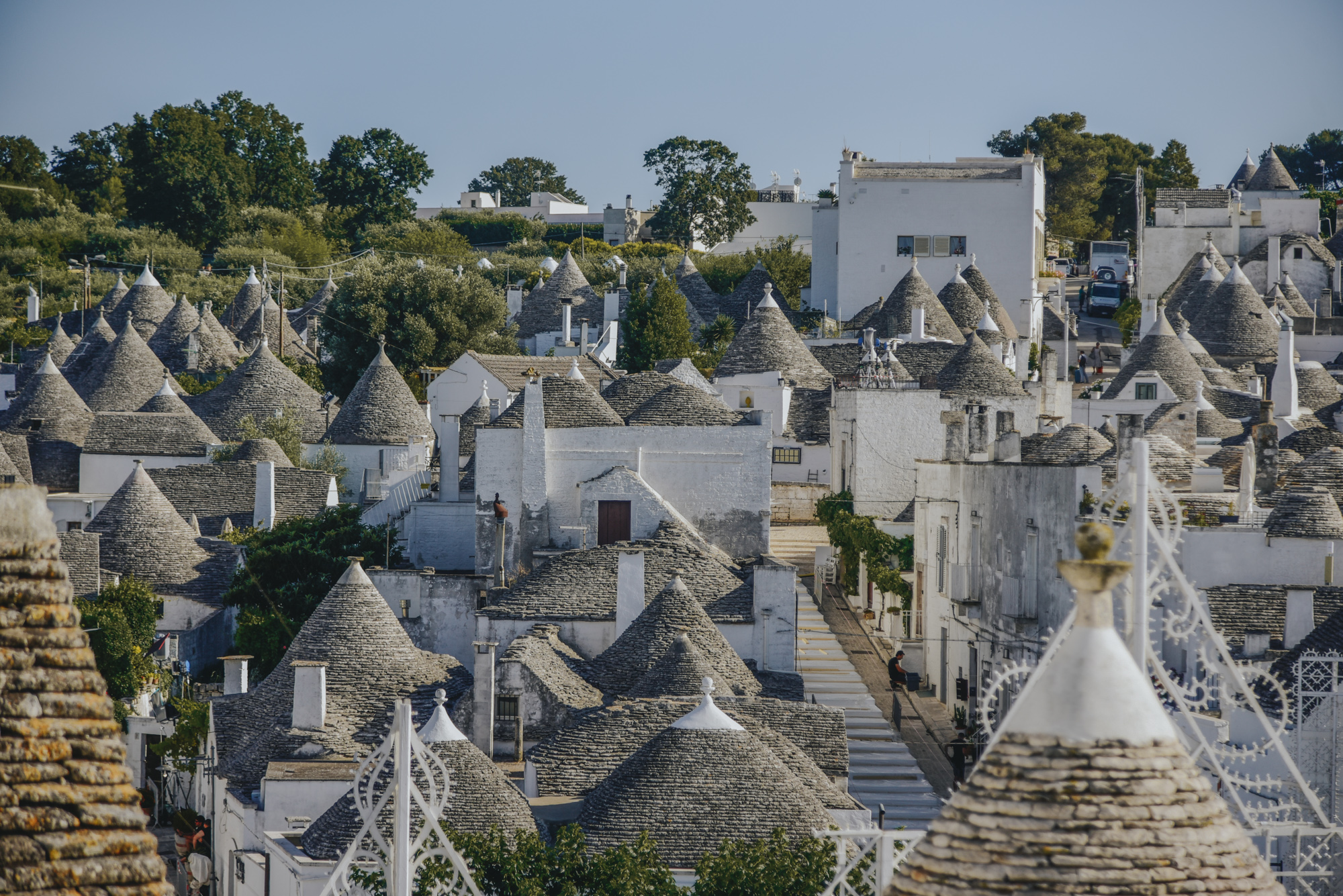 Just a short walk away is the Basilica of Saints Cosma and Damiano, an ornate 18th-century church that contrasts strikingly with the surrounding sea of Trulli. Beyond the few attractions, the city is yours to get lost in.